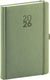 Denní diář Diamante v olivové barvě s povrchem s jemnou strukturou připomínající výbrus diamantu má zakulacené rohy, poutko na tužku a elastickou gumičku.