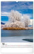 Kalendář s fotografiemi přírodních scenérií s dominantami stromů a univerzálním kalendáriem.