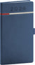 Kapesní diář Tomy v modro-červené barvě s klasickým povrchem imitujícím kůži, který doplňuje jemné prošití.